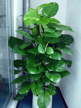 大型常綠藤本植物。生長于熱帶地區常攀援生長在雨林的巖石和樹干上,可長成巨大的藤本植物。綠色的葉片上有黃色的斑塊。其纏繞性強,氣根發達,既可讓其攀附于用棕扎成的圓柱上,擺于門廳、賓館,也可培養成懸垂狀置于書房、窗臺,是一種較適合室內擺放的綠植。